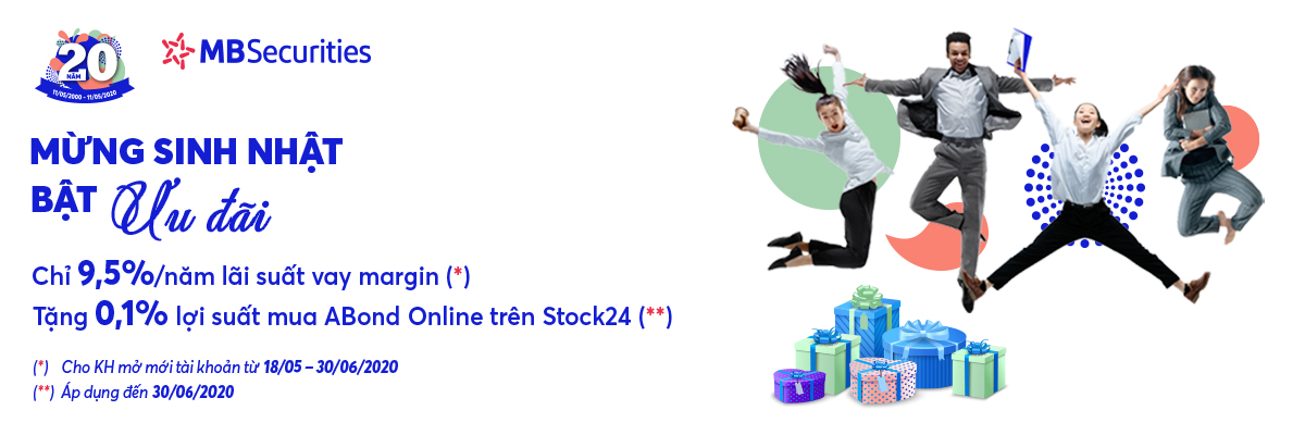 Nhân dịp 20 năm thành lập, MBS triển khai chương trình ưu đãi “Mừng sinh nhật – Bật ưu đãi” với nội dung chi tiết ưu đãi như sau: